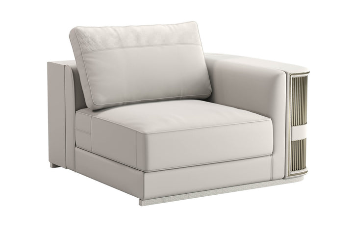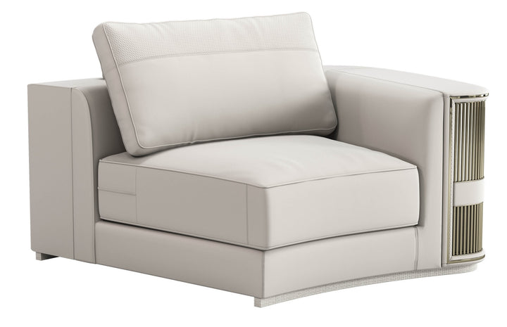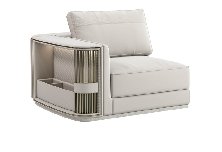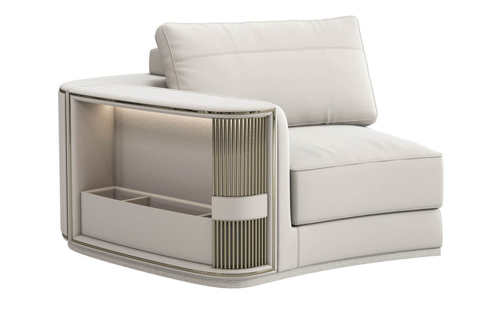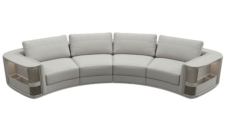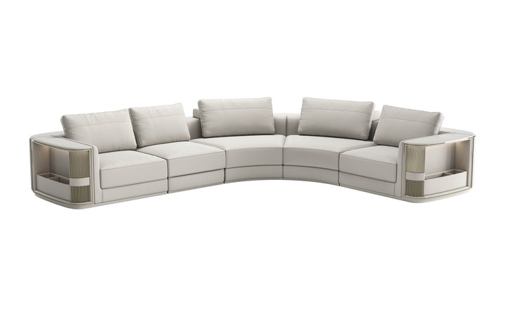 The 4pc Churchill Curve Sofa Sectional blends contemporary elegance with everyday practicality. Expertly constructed from durable hardwood and upholstered in high grade Italian leather, this sectional offers not only style but also lasting durability. With built-in storage compartments on the arms, mood-setting LED lights, and refined gold metal accents, this piece enhances both convenience and visual appeal. Designed for superior comfort, the cushions are filled with a blend of soft down and high resilience sponge, ensuring ergonomic support and inviting relaxation. Perfect for upscale interiors, this sectional brings modern sophistication to any living space.