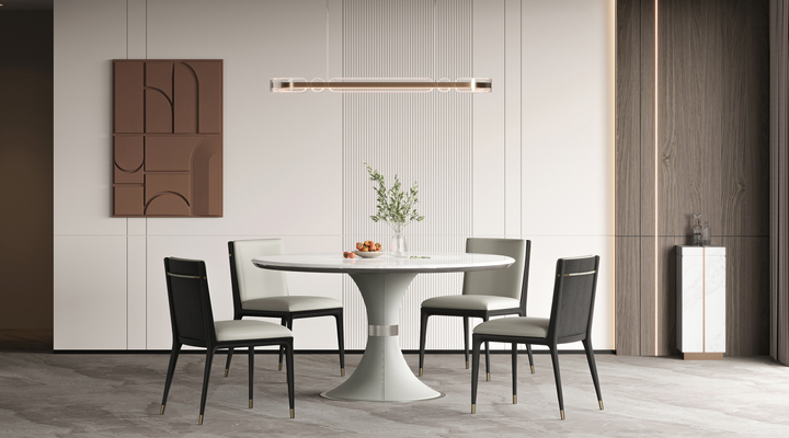The Galena Dining Chair is a refined blend of durability and sophistication. Constructed from solid red oak and hardwood, its structure ensures long-lasting support, while the red oak veneer back panel highlights the natural beauty of wood grain. The genuine leather upholstery offers a luxurious seating experience, complemented by soft sponge filling for exceptional comfort during extended dining. Perfectly balancing natural materials and expert craftsmanship, this chair adds elegance to any dining setting, whether modern or classic.