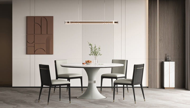 • Upholstered in genuine leather for a luxurious and refined seating experience.