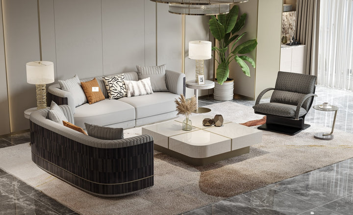 3Pc Sofa set only, 3pc plus Square Coffee Table, 3pc plus Round Marble Top Coffee Table |