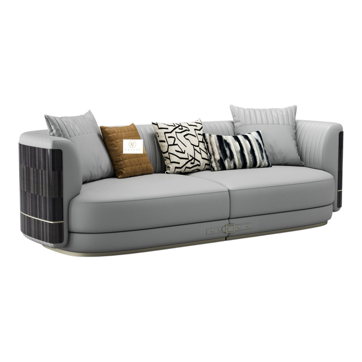 Elevate your interior with the Marydel Sofa Set, a contemporary masterpiece featuring sculpted backrests with rich tech veneer finish, crafted from a luxurious combination of Liriodendron Tulipifera wood, stainless steel, and plywood. Upholstered in top-grade genuine leather, this set is designed to deliver visual sophistication and long-lasting comfort. The plush sponge filling and generous seat depth provide deep support, perfect for both casual lounging and upscale entertaining. Whether placed in a modern living room or a formal lounge, the Marydel Sofa Set makes a bold yet elegant statement.