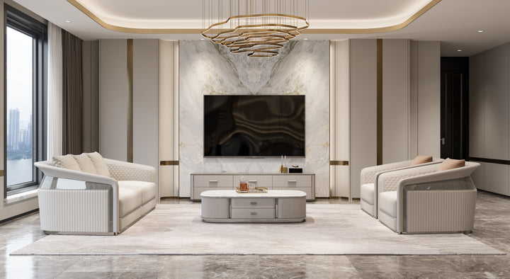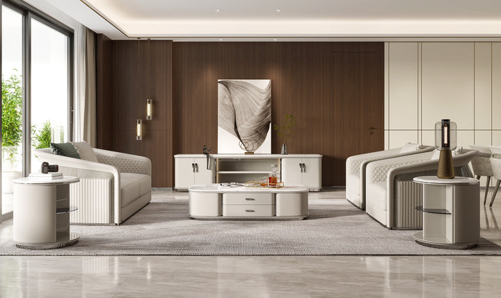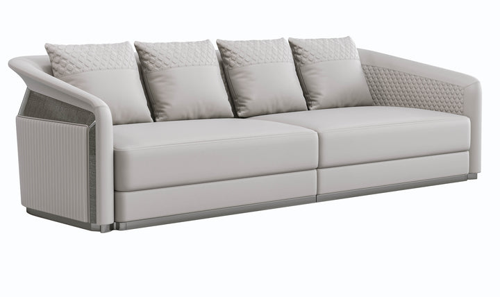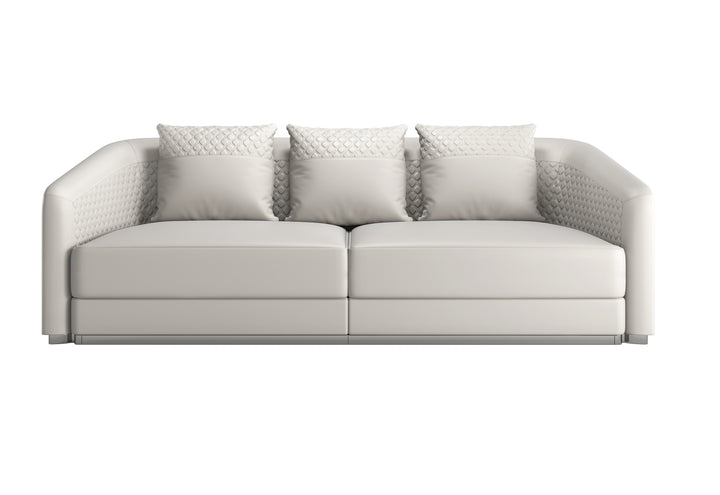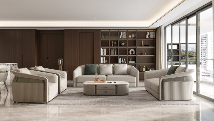 The sofa is upholstered in a luxurious combination of genuine leather and microfiber leather, striking the perfect balance of softness, durability, and style. High-density sponge filling ensures reliable support and plush seating comfort, while its contemporary design with meticulous craftsmanship complements both modern and classic interiors.