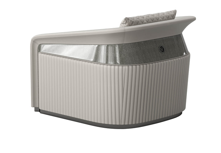 Upholstery Material: Grey Genuine Leather + Microfiber Leather