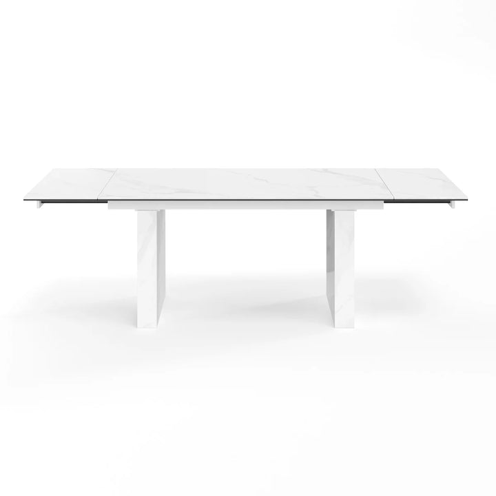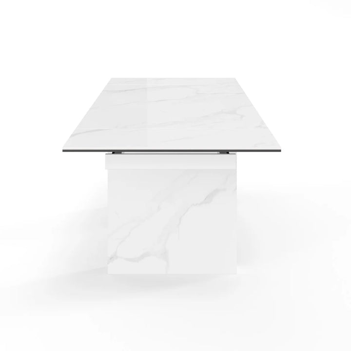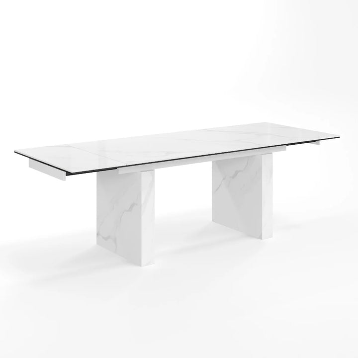 The frame of the St Charles table is crafted from metal and finished in a chic white matte painting, adding a touch of modern elegance to your dining space. The base, made from MDF (Medium Density Fiberboard), is covered with 6mm ceramic on all four sides, contributing to both stability and a refined aesthetic.