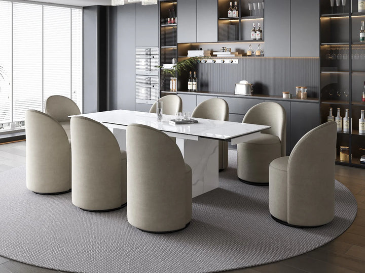 The table's top is a harmonious blend of sophistication and durability, with a 6mm ceramic surface seamlessly integrated with an 8mm tempered glass foundation. This combination not only enhances the aesthetic appeal but also ensures resilience against everyday wear and tear.
